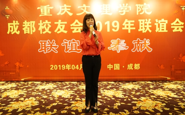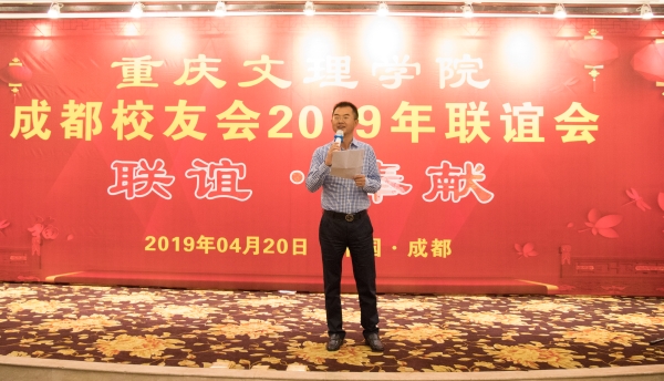 联谊会由钟晓斌主持。姚平致欢迎辞,他热情欢迎校友总会及各位校友的到来,并回顾了成都校友会历年来在支持母校发展、联络校友感情方面开展的活动,并详细介绍了成都校友会承办母校第二届校友文化节的筹备情况。