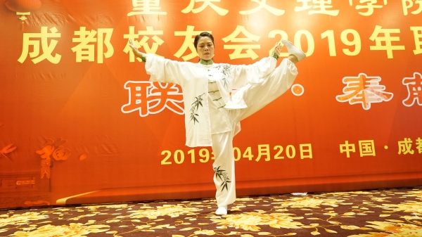 美术05级鞠文暹校友的太极瑜伽表演,优美的舞姿令大家沉醉;
