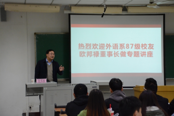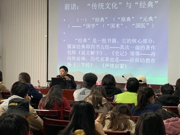 在文化与传媒学院,林科吉校友举办学术讲座。他以小见大,层层递进,用幽默风趣的语言,深入浅出地引导学生从考古学、文化学、人类学、文字学等多个视角观察问题,使人受益匪浅。