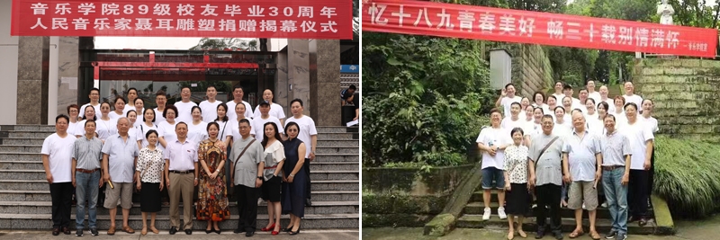 7月17日,音乐学院89级校友相聚母校举行毕业30年纪念活动,大家欢聚一堂,共同回首往事,追忆美好青春,畅叙师生情谊。学校党委副书记、校长黄伟九,学校校友办主任、校友总会秘书长谢华琳,音乐学院党总支书记、副院长杨桦,党政办主任、校友分会秘书长毛君,89级校友教师代表陈光青、彭云、郭莘舫、蒋世雄、张红霞及30余名89级校友参加纪念活动。
