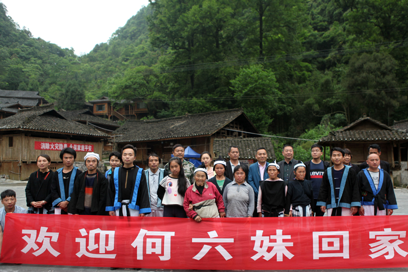 近日,贵州省黔南州大山深处的荔波县瑶山瑶族乡菇类村懂蒙组,瑶民们身着节日的盛装,敲响铜鼓和木鼓,用最热情的仪式欢迎远方的客人和亲人的到来。44岁、离开家乡25年的瑶族妇女何六妹,在开元选派永川区来苏镇关门山村驻村第一书记邓德学及其带领的扶贫干部一行人的护送下,驱车近10个小时,行程1500多里,回到了家乡瑶寨,与86岁的老母亲及亲人团聚。