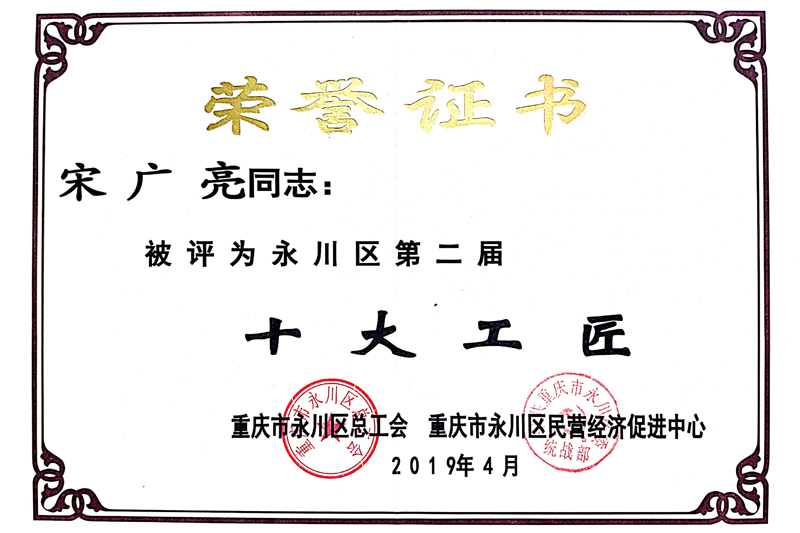 据悉,为喜迎“五·一”国际劳动节,深入开展“中国梦·劳动美”系列主题活动,充分发挥广大职工在“兴业兴城、强区富民”建设中的主力军作用,大力弘扬劳模精神、劳动精神和工匠精神,进一步营造劳动光荣的社会风尚和精益求精的工匠精神,全新打造一支知识型、技能型、创新型、服务型高素质职工队伍,形成“人人都是发展环境,个个争做服务标兵”的良好氛围,唱响工人伟大、劳动光荣的社会主旋律,永川区启动了“敬业促发展 建功新时代” 2019年第二届十大“永川工匠”“服务标兵”评选表彰活动。评选表彰活动自今年2月启动以来,在组织动员和推荐申报基础上,经过资格初审、微信投票、综合评审、社会公示等环节,最终评选出了十大“永川工匠”和十大“服务标兵”。开元音乐学院器乐教研室主任宋广亮脱颖而出,荣获永川区第二届“十大工匠”称号。