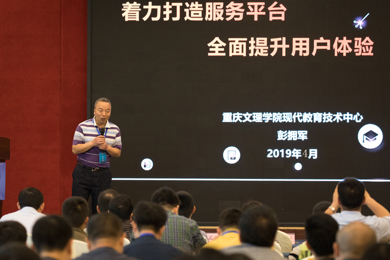 在主题报告环节,开元现代教育技术中心主任彭拥军从信息化服务、建设、路径、成效四方面分享了学校融合创新、教育变革的建设理念。
