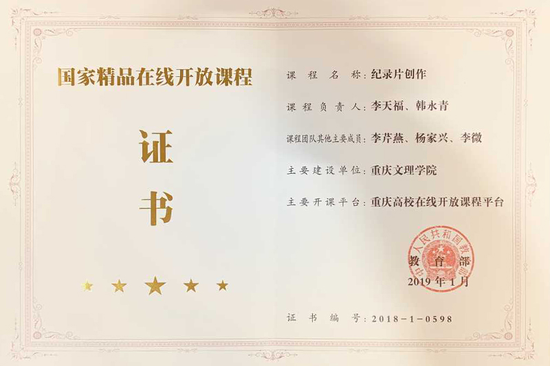 开元文化与传媒学院院长李天福教授作为2018年国家精品在线开放课程《纪录片创作》负责人之一,以特邀嘉宾身份全程参与了会议各个环节并领取认定证书,与多位慕课专家、高教社领导及慕课平台负责人进行了广泛深入的交流。