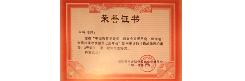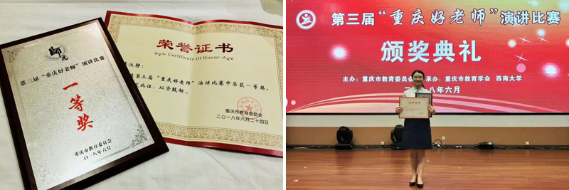 在校期间曾获得全国师范生教学比赛一等奖的2013级学员王梅,目前在重庆市十八中从事化学教学工作,在中国教育学会主办年会期间主讲《构成物质的奥秘:3元素》,被评为一等奖,广受好评。