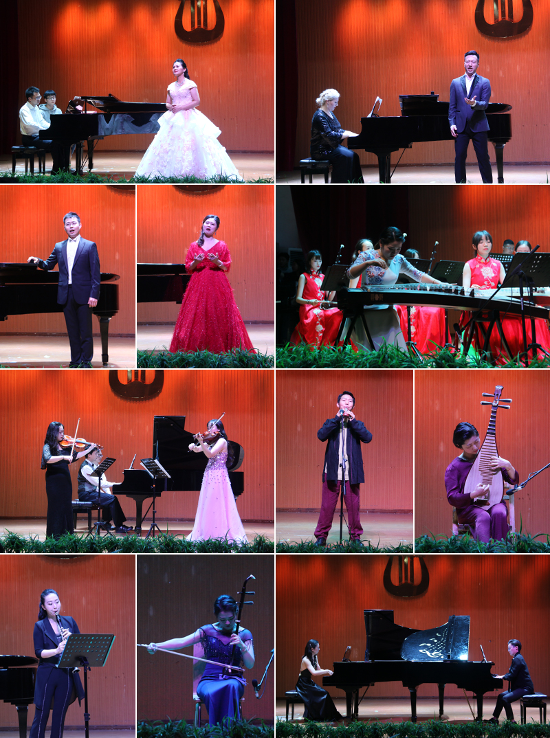 青年器乐老师们先后以古筝与民乐团协奏、琵琶与钢琴协奏、竹笛独奏、二胡独奏、双小提琴与钢琴合奏、埙独奏、单簧管与女高音协奏等形式,演绎了《出水莲》《云想花想》《灞桥》《太极琴侠》《钢琴和双小提琴作品五首》《故土》《岩石上的牧羊人》等经典作品。老师们时而行云流水,时而如诉如泣,时而悲怆苍凉,时而欢悦舒畅,将听众带入多彩的音乐意境,情趣盎然,引人入胜。