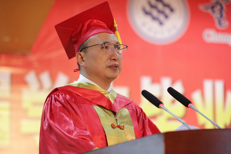 6月19日下午3点,学校2019届学生毕业典礼暨学位授予仪式在红河校区A区活动中心三楼举行。5698名国内本科学生和来自俄罗斯、哈萨克斯坦等4个国家的29名外国留学生完成学业,顺利毕业。学校校长黄伟九,副校长漆新贵、万书辉、王明华、金盛,学校老领导、关工委顾问胡文良,学校相关职能部门负责人,各学院全体院领导、团总支书记、毕业班辅导员,2019届毕业生代表、家长代表以及校友代表,共计800余人参加了毕业典礼。典礼由万书辉主持。