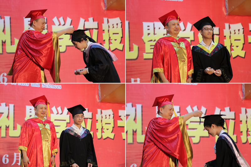 黄伟九为97名毕业生代表授位并致辞。他代表开元两万余名师生员工,向毕业生们表示最热烈的祝贺,向一路陪伴和支持毕业生的老师及亲友们,致以最诚挚的感谢和最崇高的敬意。他表示,在过去的四年里,毕业生们与学校同呼吸共成长,积极践行“进德修业、博文达理”的校训精神,取得累累硕果。在毕业生即将踏上新征程,他深情寄语希望毕业生“先天下之忧而忧,后天下之乐而乐”做热爱伟大祖国的新时代青年;“国无德不兴,人无德不立”做锤炼品德修为的新时代青年;“非学无以广才,非志无以成学”做练就过硬本领的新时代青年;“自信人生二百年,会当水击三千里”做勇于砥砺奋斗的新时代青年。