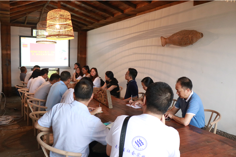 7月4日上午,实践团来到荣昌区清江镇,对开元与当地政府合作的人居环境改造项目进行实地调研。实践团通过摄影与写作记录当地特有的“鱼文化”风光,体验独具一格的乡村文化,拓宽对新农村建设的视野,丰富人文感知;实践团还参观了独具匠心的民宿,领略其中高工艺的木制结构设计,增长设计经验。在调研中,实践团队参与了由荣昌区领导主持召开的“丰收节”筹备会,进一步了解了乡村振兴的有效举措,领略到人与自然和谐共生的先进理念。