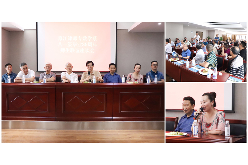 站在七月的巷口,满眼阳光,点点滴滴,35年前的时光仿佛就在眼前。7月13号下午,原江津师专数学系81级毕业35周年师生联谊座谈会在永川星光酒店33楼的会议室举行。学校党委副书记兰刚、副校长王明华,原江津师专老领导,数学与财经学院党政负责人以及当年的任课教师和81级校友们欢聚一堂,重温母校情,共叙当年意。