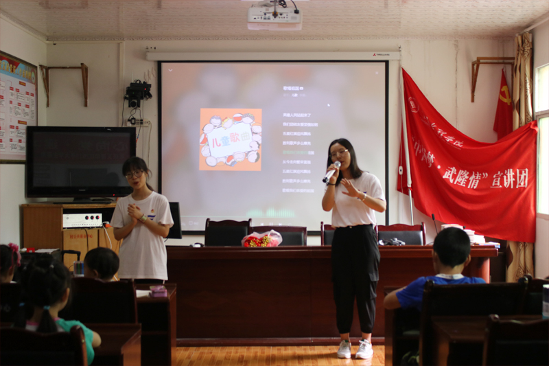 17日,服务团来到龙宝塘村开展爱心支教活动,以实际行动助力教育扶贫。志愿者们通过音乐课教唱歌曲《歌唱祖国》,增强孩子们热爱祖国的情感,引导他们从小树立实现中华民族伟大复兴的远大理想。服务团还通过舞蹈课、手工课培养他们对艺术的兴趣,提高他们的动手能力。班会课以原创情景剧、现场互动、观看视频的形式让孩子们了解垃圾分类的知识,培养他们从小养成垃圾分类的习惯和保护环境的意识。