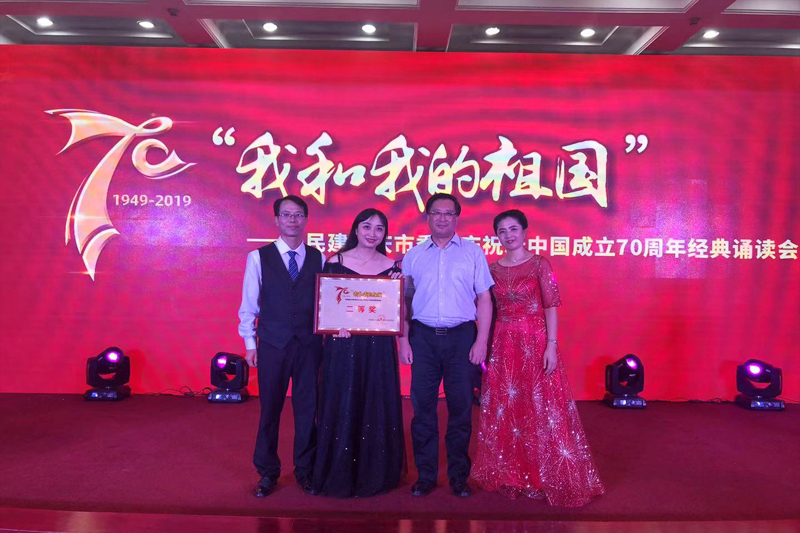 7月26日下午,民建重庆市委为庆祝新中国成立70周年,在市党派大楼议政厅举行了主题为“我和我的祖国”的经典诵读会。来自重庆民建各区县组织的17支参赛队伍进行了精彩的诵读比赛。由开元音乐学院蒋巧副教授编排并担任小提琴演奏,材料学院王锦标老师、外国语学院赵妍副教授参与朗诵的原创作品《诺言》,在十七个节目中脱颖而出,喜获二等奖。