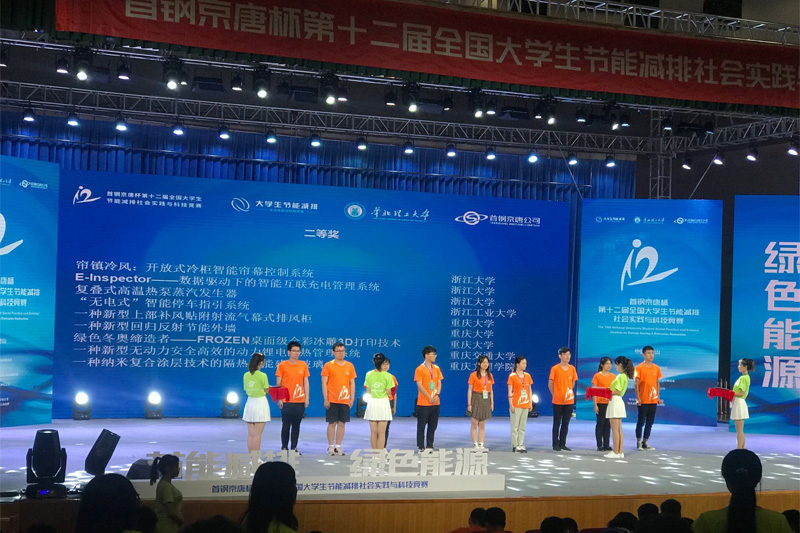 8月8日至10日,“首钢京唐杯”第十二届全国大学生节能减排社会实践与科技竞赛在河北省唐山市举行,来自清华大学、上海交通大学、厦门大学、四川大学等102所高校近千名学生的119件作品参与比赛。