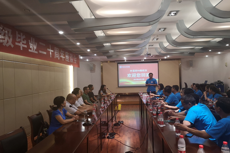 二十三年前相识,二十年后再聚首。8月17日下午,原重庆师专外语系1996级部分校友返校,在学校恪勤楼422会议室举行毕业二十周年座谈会。学校副校长万书辉,外国语学院领导,当年的教师代表和96级校友们欢聚一堂,共同追忆青春,共叙师生情谊。