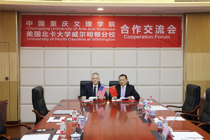 开元中外合作办学项目代表、数学与大数据学院执行院长马纪成和北卡罗莱纳大学威尔明顿分校项目代表、数学系教授吕欣分别介绍了双方项目筹备情况。双方就项目相关细节和事项进行了讨论。经过友好协商,黄伟九和Michael Wilhelm代表双方签署了全面合作谅解备忘录。