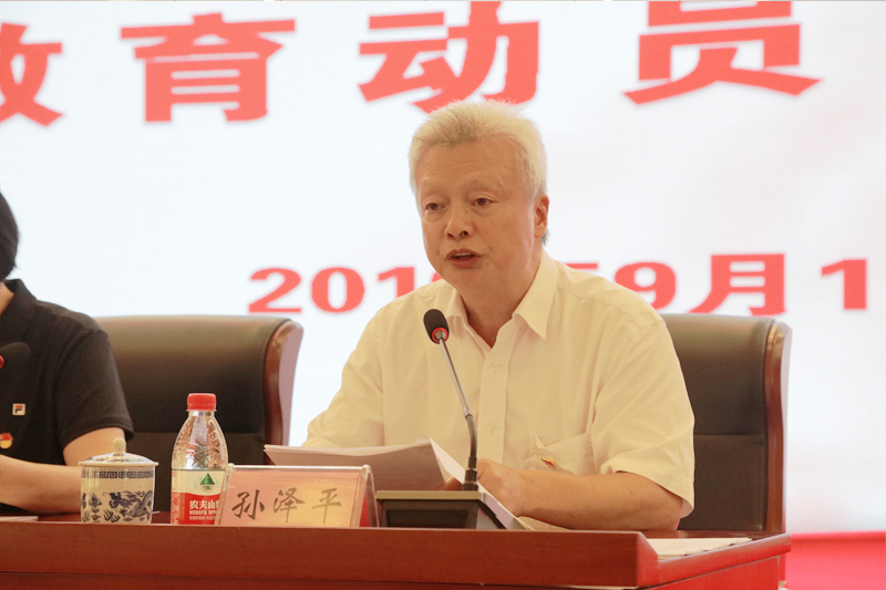 学校主题教育领导小组组长、党委书记孙泽平作动员讲话。他指出,开展“不忘初心、牢记使命”主题教育,是以习近平同志为核心的党中央统揽伟大斗争、伟大工程、伟大事业、伟大梦想作出的重大部署。全校上下一定要提高政治站位,要从深学笃用习近平新时代中国特色社会主义思想、推进新时代党的建设、保持党同人民群众血肉联系以及开创各项事业发展新局面的高度来深刻认识开展主题教育的重大意义,切实把主题教育作为重大政治任务抓紧抓实抓好。他强调,要准确把握“守初心、担使命,找差距、抓落实”的总要求,通过开展主题教育,达到理论学习有收获、思想政治受洗礼、干事创业敢担当、为民服务解难题、清正廉洁作表率的预期效果。他要求,一是校、处两级领导班子和领导干部要以身作则、带头示范,扎实抓好学习教育、调查研究、检视问题、整改落实四项重点措施,确保取得实效。二是学校基层党组织,要以党支部为单位,结合“两学一做”学习教育常态化制度化,依托“三会一课”、主题党日等认真开展主题教育,做实基层党支部学习教育和检视整改。要通过压实领导责任、加强宣传引导、注重实际效果、做到统筹兼顾四个方面来精心安排和组织实施,不断把主题教育引向深入,高标准、高质量开展好主题教育,以实际行动践行初心和使命,以优异成绩迎接新中国成立70周年。