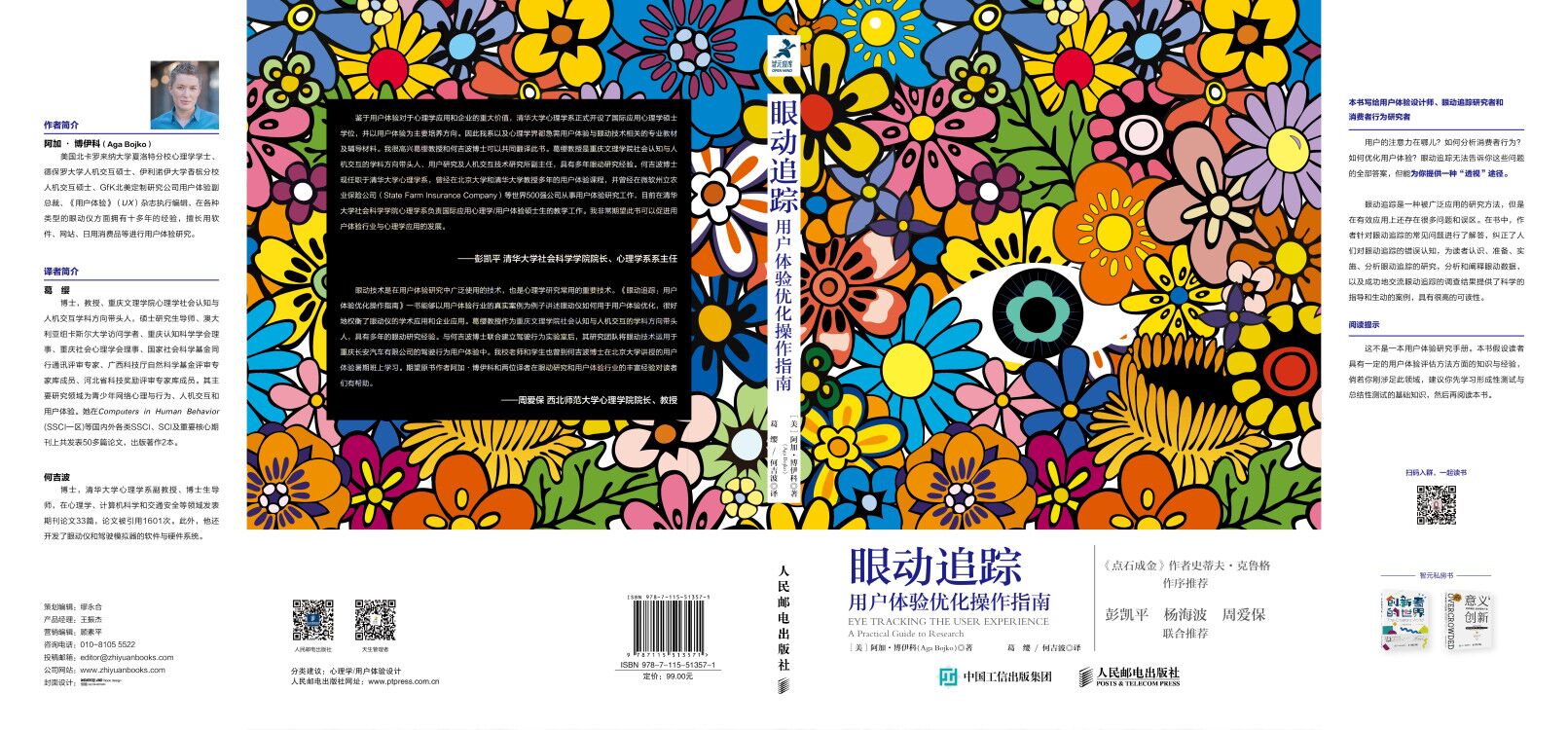 中国心理学会眼动心理专委会副主任、天津师范大学杨海波教授特地为此书撰写了推荐序言,对书中的精髓要点进行了详细的分析与概括,具有指导意义与引领作用。清华大学心理学系主任彭凯平教授、西北师范大学心理学院院长周爱保教授写了推荐语,阐明了此书与当今智能社会需求与发展的契合性。