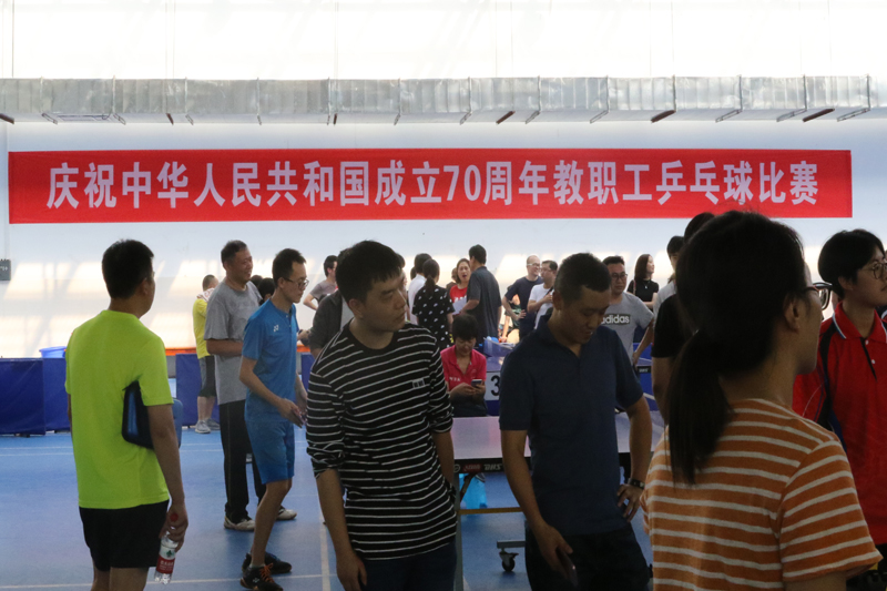 9月27日下午,由校工会主办,体育学院承办的“迎国庆、强身心”教职工乒乓球比赛,分别在红河B区(乒羽球馆)、红河A区教工之家举行。各二级单位以基层工会为单位通过抽签参加了比赛。