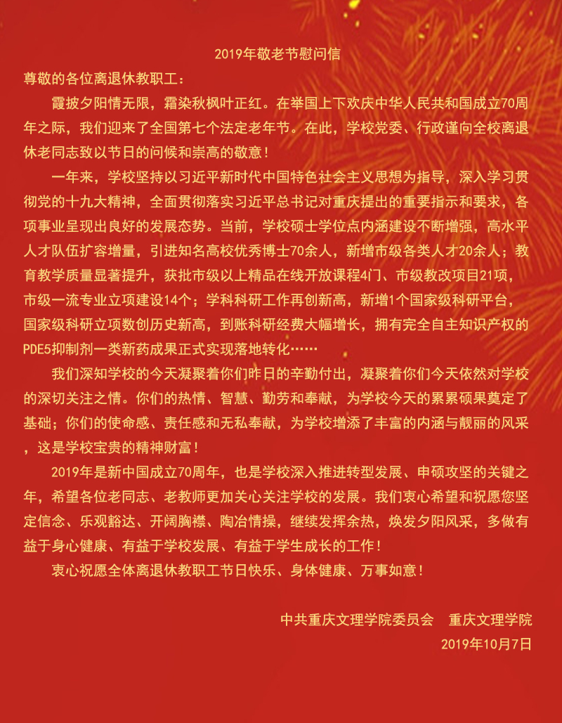 2019年敬老节慰问信