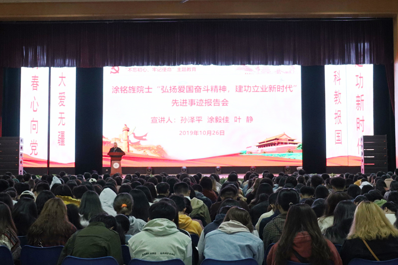 为深入推进“不忘初心、牢记使命”主题教育,深入学习、缅怀涂铭旌院士,10月26日上午在星湖校区活动中心四楼,学校党校举办了第二场涂铭旌院士“弘扬爱国奋斗精神 建功立业新时代”先进事迹报告会。学校主题教育领导小组组长、党委书记孙泽平带头宣讲。学校主题教育领导小组办公室主任周洪亮主持报告会。涂铭旌院士的夫人唐昭莼女士,党委组织部、校团委、安全管理处、音乐学院负责人,党校班主任,星湖校区党校第七十二期入党积极分子及星湖校区院校两级学生干部共计800余人参加了报告会。