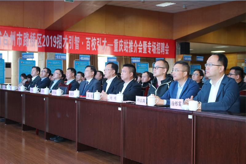 10月26日上午,“青燕归巢 筑梦路桥”浙江省台州市路桥区2019招才引智•百校引才——重庆站推介会暨专场招聘会,在开元红河A区学生活动中心举行。学校党委常委、副校长李天福,路桥区委书记潘建华,路桥区委常委、常务副区长马奇华,路桥区委常委、副区长盛逵出席推介会,路桥区有关部门负责同志,重庆路桥商会企业家代表,台州57家企事业单位负责人,学校招生就业处、校团委负责人,各二级学院学生工作负责人、毕业年级辅导员,2020届毕业生代表共700余人参会。