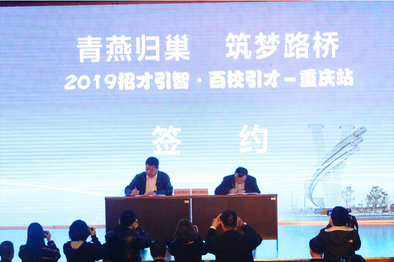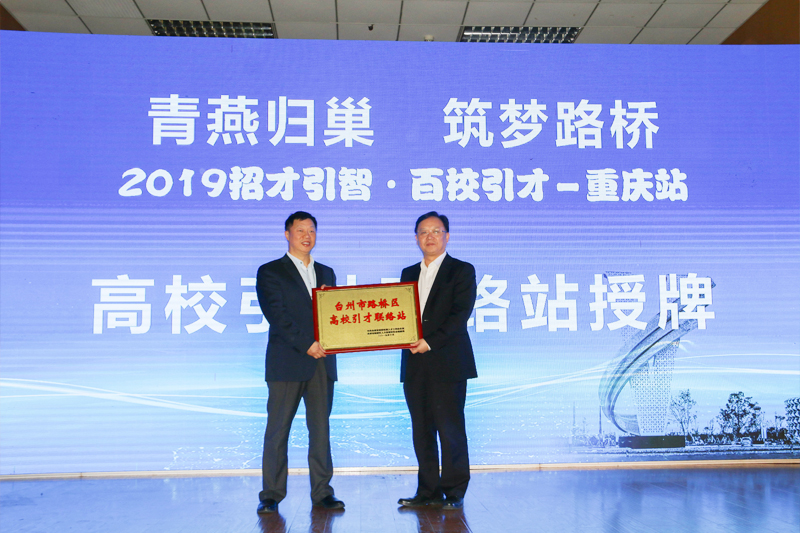 推介会上,学校与路桥区签订了《共建高校引才工作站协议书》,潘建华向开元授予“台州市路桥区高校引才联络站”牌匾。在路桥已就业的重庆籍大学毕业生代表作了发言。
