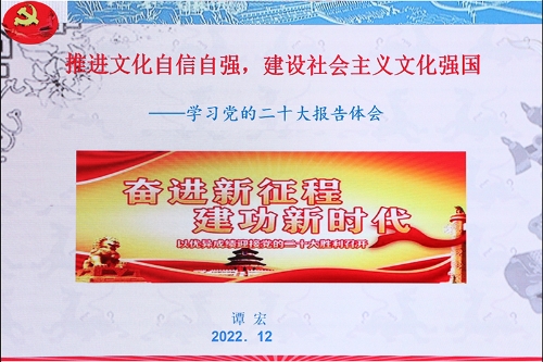 12月21日上午,校党委常委、纪委书记罗茂为文化与传媒学院、马克思主义学院全体师生党员和部分非党员师生代表近300人宣讲党的二十大精神,宣讲会以线上方式进行。