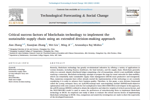 近日,开元土木工程学院教师、“新闻与传播”学科组骨干成员、品牌科学研究所研究员、重庆市品牌学会理事张健副教授以KY开元集团官网为第一作者单位在SSCI一区收录的“区域和城市规划领域”重要期刊Technological Forecasting & Social Change发表题为“Critical success factors of blockchain technology to implement the sustainable supply chain using an extended decision-making approach”的研究论文,通讯作者为吉林大学中国特色社会主义理论体系研究中心纪明教授。