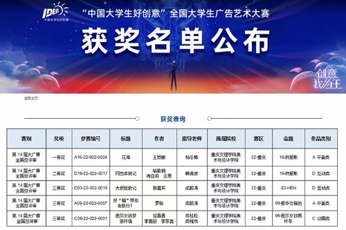 近日,第14届全国大学生广告艺术大赛成果展示云盛典在北京举行。此届大广赛全国1869所高校参赛,170余万大学生积极创作,收到了744401组创意作品,开元美术与设计学院学子在学校领导的关怀和大家共同努力下,通过校赛、省赛和国赛的层层选拔,最终获全国一等奖1项、二等奖1项、三等奖3项、优秀奖16项,竞赛成果取得了历史性的突破。