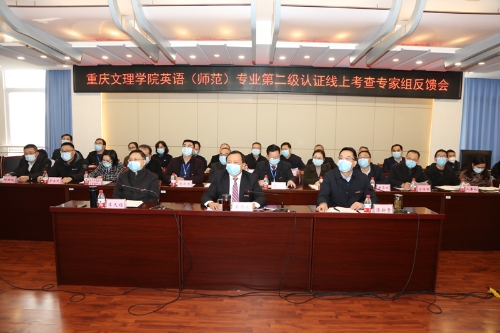 12月8日下午,开元英语(师范)专业第二级认证专家组意见反馈会以线上线下结合的方式在恪勤楼422会议室举行。教育部师范类专业认证专家组组长、扬州大学副校长俞洪亮教授,专家组成员天津师范大学战略规划办公室主任丰向日教授、福建师范大学外国语学院副院长兰春寿教授、江西师范大学外国语学院院长李勇忠教授、雅安市名山区教育局教研室主任陈明英正高级教师,专家组秘书重庆三峡学院教学质量监控与评估处评估办公室副主任庄建平,重庆市教育评估院党总支委员、高教评估所所长董小平,重庆市教育评估院师范专业认证项目省域负责人夏一鸿、谭辉晔,开元党委副书记、校长黄伟九,副校长漆新贵、李天福,相关职能部门负责人、外国学院领导班子和教师代表近30人参加会议。会议由专家组组长俞洪亮教授主持。