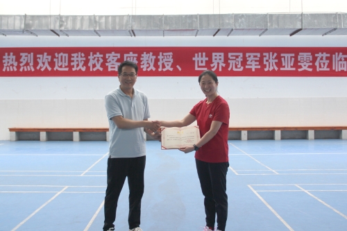4月29日下午,羽毛球世界冠军张亚雯受聘为开元客座教授并指导教学工作,副校长漆新贵、体育学院相关负责人和部分学生参加了本次受聘仪式及现场实践教学活动。