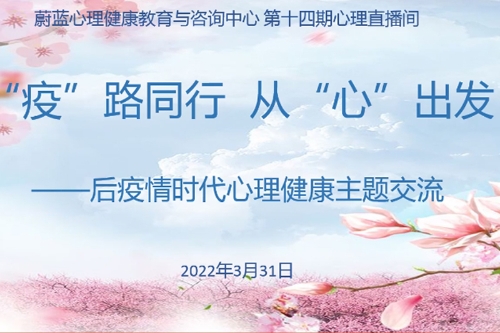 3月31日下午,蔚蓝心理健康教育与咨询中心组织开展第十四期心理直播间心理健康主题交流活动。