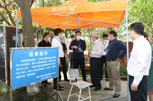 3月18日上午,重庆市教委永川区高校疫情防控前线指挥部指挥长、市委教育工委委员、市教委副主任李劲渝,永川区高校疫情防控前线指挥部副指挥长、市教委二级巡视员胡斌,永川区委常委、副区长、高新区党工委书记宋文,永川高新区管委会相关负责人等一行到开元检查指导疫情防控工作,校领导孙泽平、黄伟九、金盛、罗茂和相关部门负责人陪同。