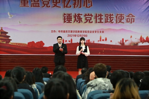 12月29日下午,教育学院党总支学生支部在博文馆101开展了“重温党史忆初心,锤炼党性践使命”主题党日活动。学校党委常委、副校长李天福,教育学院党组织负责人、全体学生党员及部分入党积极分子出席并参与本次活动。