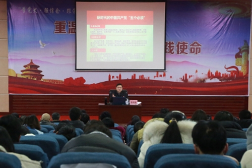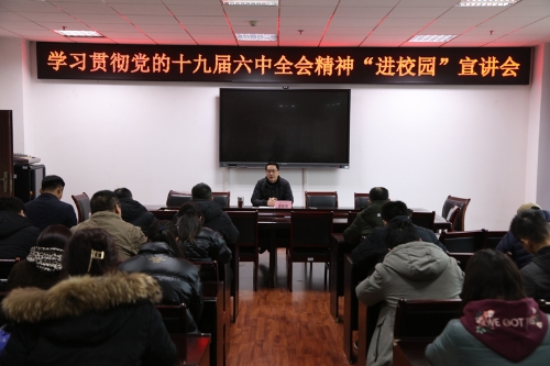12月29日下午,学习贯彻党的十九届六中全会精神“进校园”宣讲分队成员,学校党委常委、副校长李天福在博文馆101开展以“党的百年奋斗重大成就和历史经验”为题的十九届六中全会精神宣讲会。教育学院和智能制造工程学院的全体师生党员到场聆听。