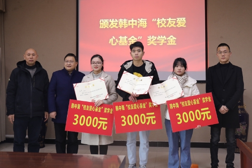 12月31日上午,韩中海“校友爱心基金”奖学金颁奖仪式在红河B区格物楼C401举行。学校副校长李天福,基金捐赠校友韩中海,学校教育发展基金会相关负责人、化学与环境工程学院党政班子、师生代表及获奖学生参加颁奖仪式。仪式由化学与环境工程学院党总支书记朱江主持。