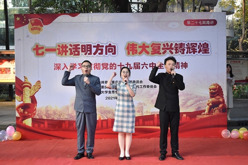 12月1日,为深入学习贯彻党的十九届六中全会精神,开元在红河A区知津楼门厅举行了“七一讲话明方向,伟大复兴铸辉煌”主题路讲活动。学校党委常委、副校长、关工委常务副主任谭宏,老领导、关工委副主任刘定云,关工委顾问胡文良,校团委、校纪委相关负责人及师生代表共计200余人参加了活动。