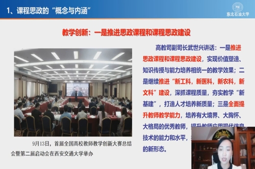 11月3日,学校组织了“课程思政教学设计理念及方法”线上培训,邀请黑龙江省青年教学名师张璐莹副教授进行线上指导,来自各二级学院近70名教师参加了培训。