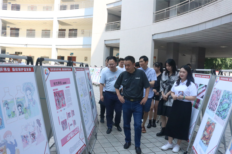 近日,第二届重庆高校“版权杯”文化创意设计大赛优秀作品巡展在开元知津楼门厅展出,副校长谭宏莅临指导。