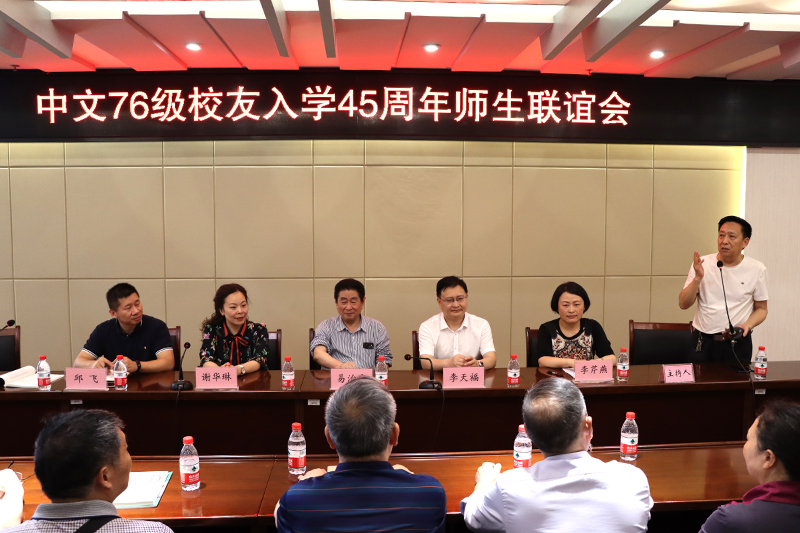 5月15日,中文76级40余名校友相聚母校举行入学45周年师生联谊会,重温青春岁月,再叙师生情谊。学校副校长李天福,原重庆师范高等专科学校副校长、原中文系系主任易治安,校友总会秘书长谢华琳,文化与传媒学院副院长李芹燕、党总支副书记邱飞以及40余名中文76级校友参加联谊会。联谊会由中文76级校友郭绵书主持。
