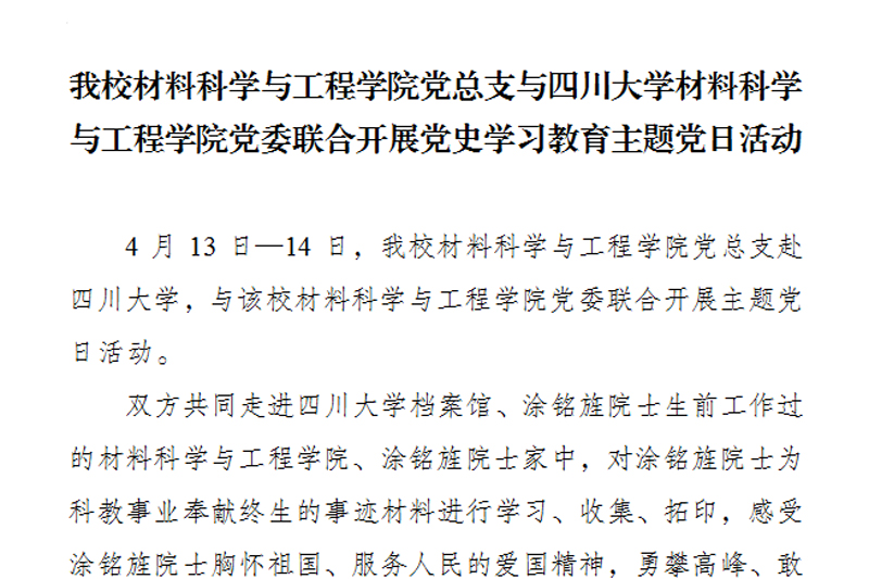 开元材料科学与工程学院党总支与四川大学材料科学与工程学院党委联合开展党史学习教育主题党日活动