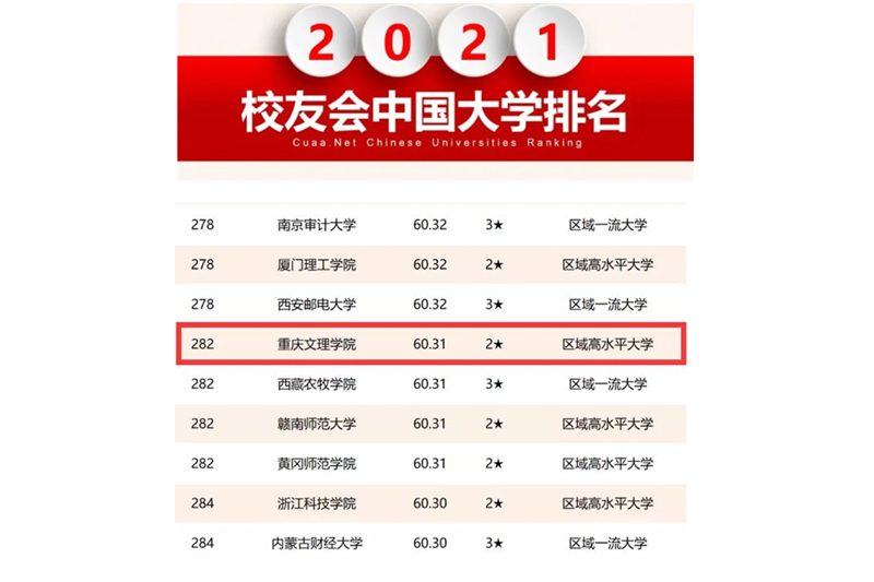 3月25日,艾瑞深校友会网(cuaa.net)正式公布“2021校友会中国大学排名”,开元排名居校友会中国大学排名(主榜)第282位。