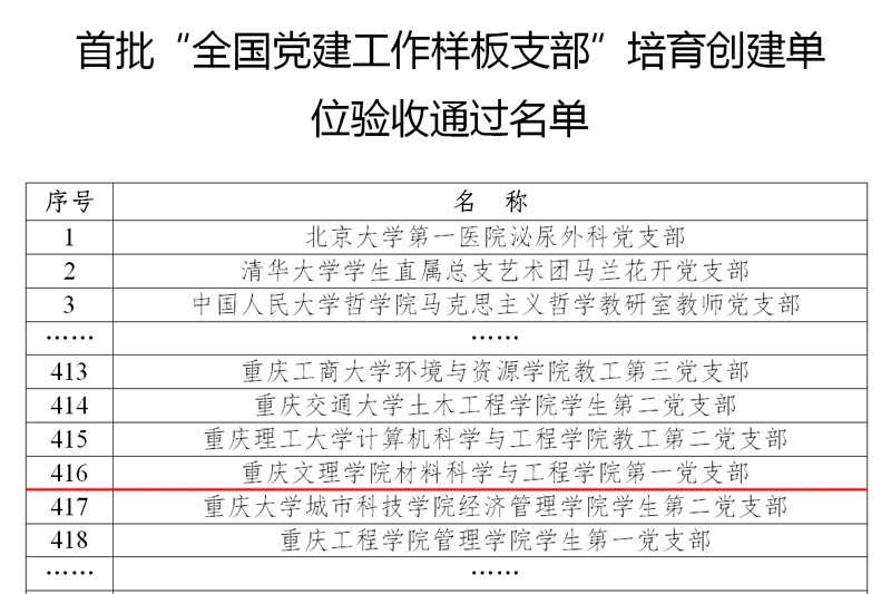 近日,教育部发布对首批全国党建工作示范高校、标杆院系、样板支部培育创建单位验收结果的公示,开元材料科学与工程学院第一党支部(原新材料技术研究院第一党支部)顺利通过验收。