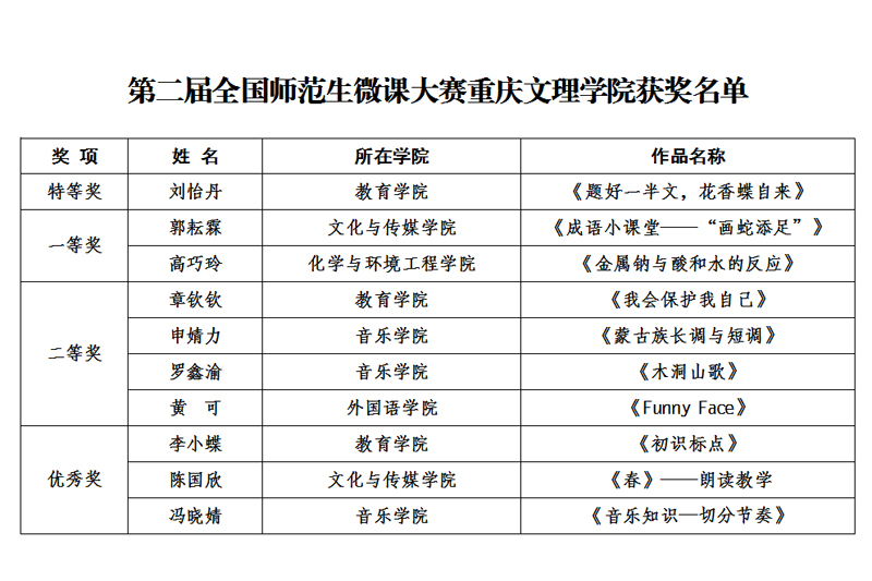 近日,第二届全国师范生微课大赛获奖结果揭晓,开元学生获得特等奖1项,一等奖2项,二等奖5项,优秀奖3项,费秀芬老师荣获优秀指导教师称号,开元荣获优秀组织院校奖,参赛成绩在全国高校中名列前茅。
