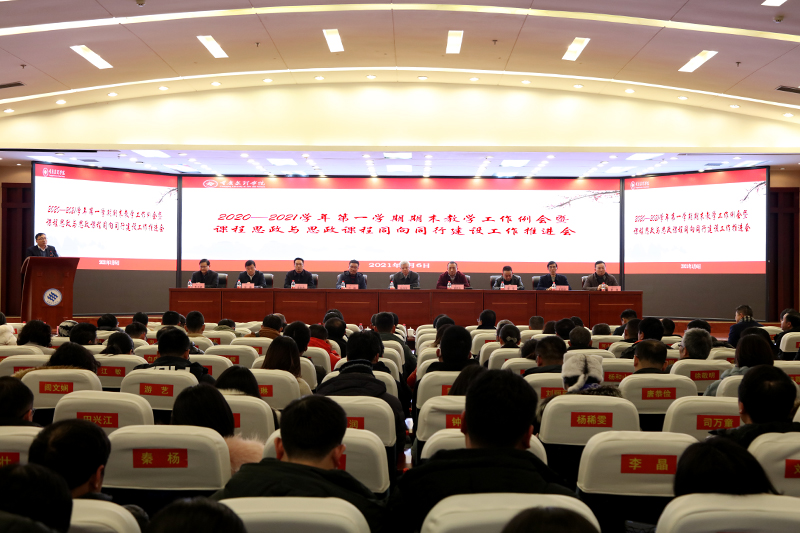 1月6日下午,开元召开2020-2021学年第一学期期末教学工作例会暨课程思政与思政课程同向同行建设工作推进会,会议在恪勤楼304会议室设主会场、知津楼第一阶梯教室设分会场。全体校领导,相关职能部门负责人,创新创业学院科岗以上人员,教务处全体人员,二级学院院长、教学副院长、教学办公室主任、实验(实训)室主任、教研室主任和专任教师代表,全体思政课程教师,辅导员代表,受表彰集体和个人代表,学生代表近600人参加了会议。会议由教务处处长王东强主持。