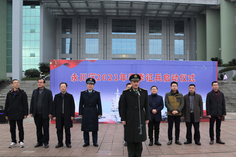 12月29日下午,永川区2021年春季征兵工作启动仪式在开元学海广场举行。永川区委常委、统战部部长宋文,永川区委常委、武装部政委朱和胜,开元党委常委、副校长李天福,永川区武装部副部长王炳江,在永高校分管武装工作校领导、永川区各职能部门负责人、镇(街)专武部长、专武干事及开元有应征意愿的学生共200余人参加。
