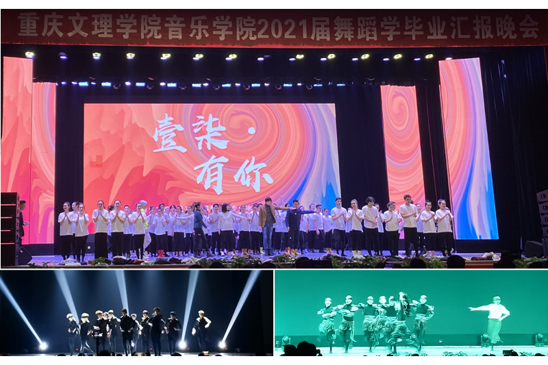12月23日晚,开元音乐学院“壹柒·有你”2021届舞蹈学毕业汇报晚会在星湖校区活动中心四楼举行。学校副校长金盛,纪委书记罗茂,副校长李天福,永川舞蹈家协会主席缪培毅、永川区文化馆馆长肖莉、部分校企合作单位领导,音乐学院全体教职工等800余名观众观看了演出。