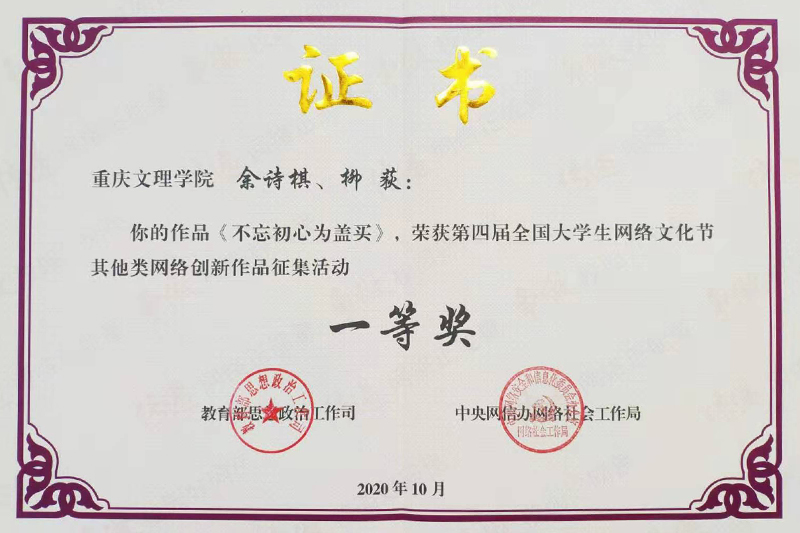 近日,教育部思想政治工作司、中央网信办网络社会工作局联合下发《关于公布第四届全国大学生网络文化节活动入选名单的通知》,开元选送的学生作品共获得其他类网络创新作品类一等奖1项,网文类二等奖1项、三等奖1项。