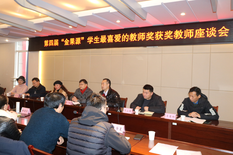 12月16日下午,学校“第四届金果源学生最喜爱的教师奖”获奖教师座谈会在恪勤楼422会议室举行。副校长李天福,中文82级校友、重庆金果源实业有限公司董事长艾中华、总经理刘刚、人事行政部长杨娟,以及学校基金会、人事处、教务处相关负责人和本届获奖教师参加了座谈会。会议由校友办主任谢华琳主持。