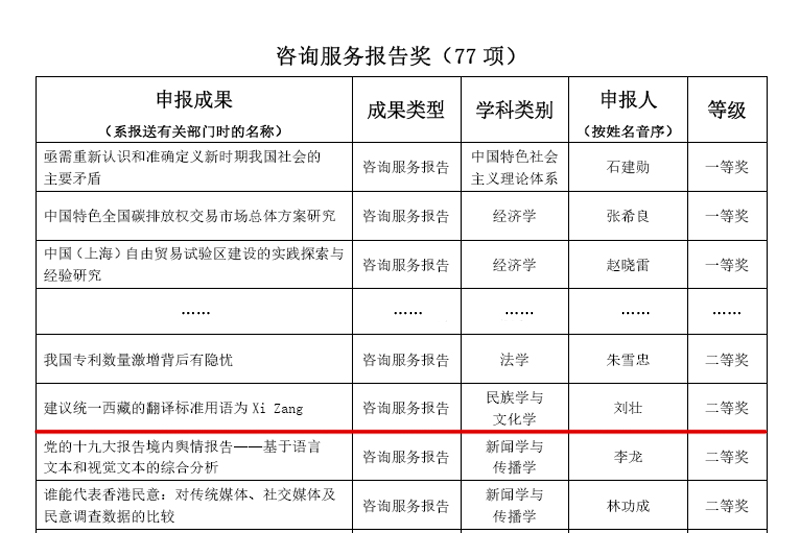 近日,教育部下发了《关于第八届高等学校科学研究优秀成果奖(人文社会科学)奖励的决定》,开元刘壮教授的咨询服务报告类成果《建议统一西藏的翻译标准用语为XiZang 》荣获二等奖,这是开元首次以独立单位或第一单位荣获教育部“高等学校科学研究优秀成果奖”,取得了历史性突破。